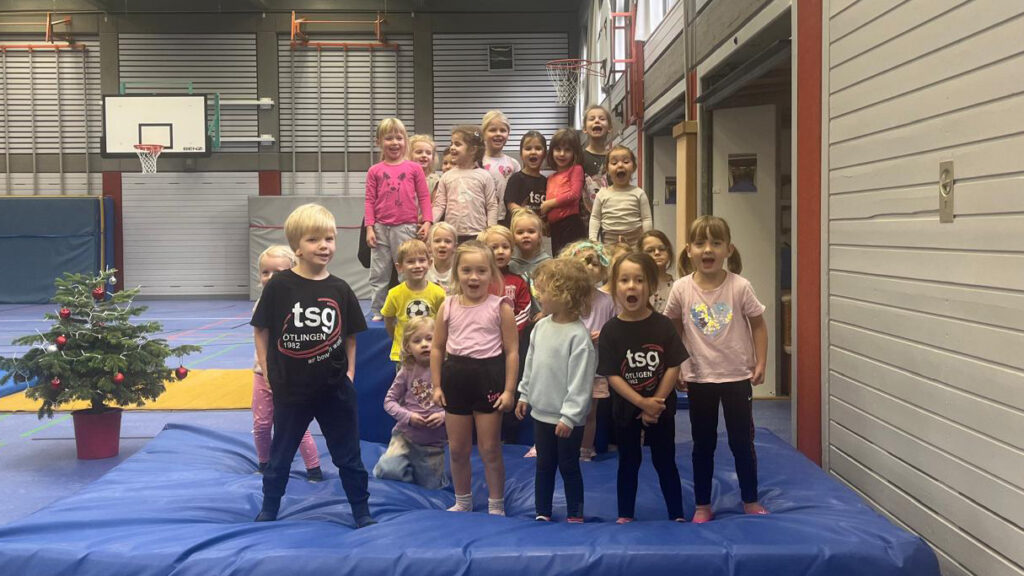 1, 2, 3, … los geht’s. Wir treffen uns in der Turnhalle zum Spielen, Toben, Rennen und um gemeinsam etwas zu erleben. Wir machen Spiele mit dem Schwungtuch und üben das Werfen und Fangen mit Bällen. Es darf geklettert, gehangelt und geschaukelt werden. Schrittweise werden wir die Kleinen an die Geräte heranführen. Außerdem lernen wir das Rollbrett kennen und trainieren so spielerisch die einzelnen Bereiche der Körperwahrnehmung.