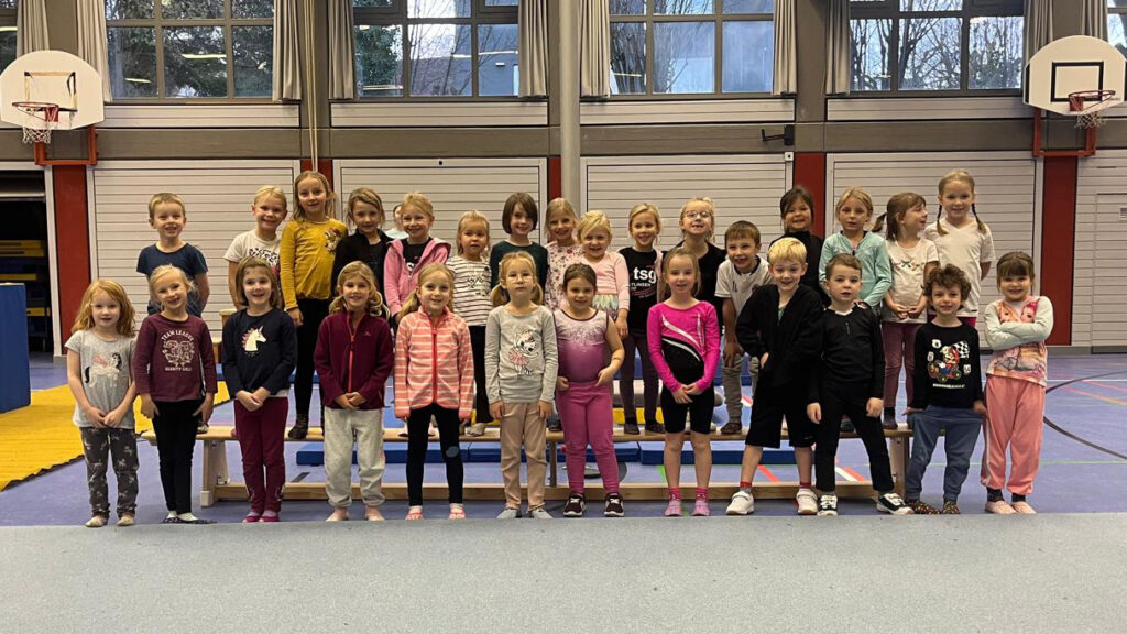 Wir wollen in der Turnstunde mit viel Spaß Ausdauer, Kraft und Koordination trainieren. Es wird spielerisch an die Großgeräte herangeführt. Ob Reck, Barren oder Schwebebalken, alles darf ausprobiert werden. Ebenso werden die Fertigkeiten mit Ball, Reifen und Seil geschult. Gemeinsam wollen wir Spaß an der Bewegung haben.